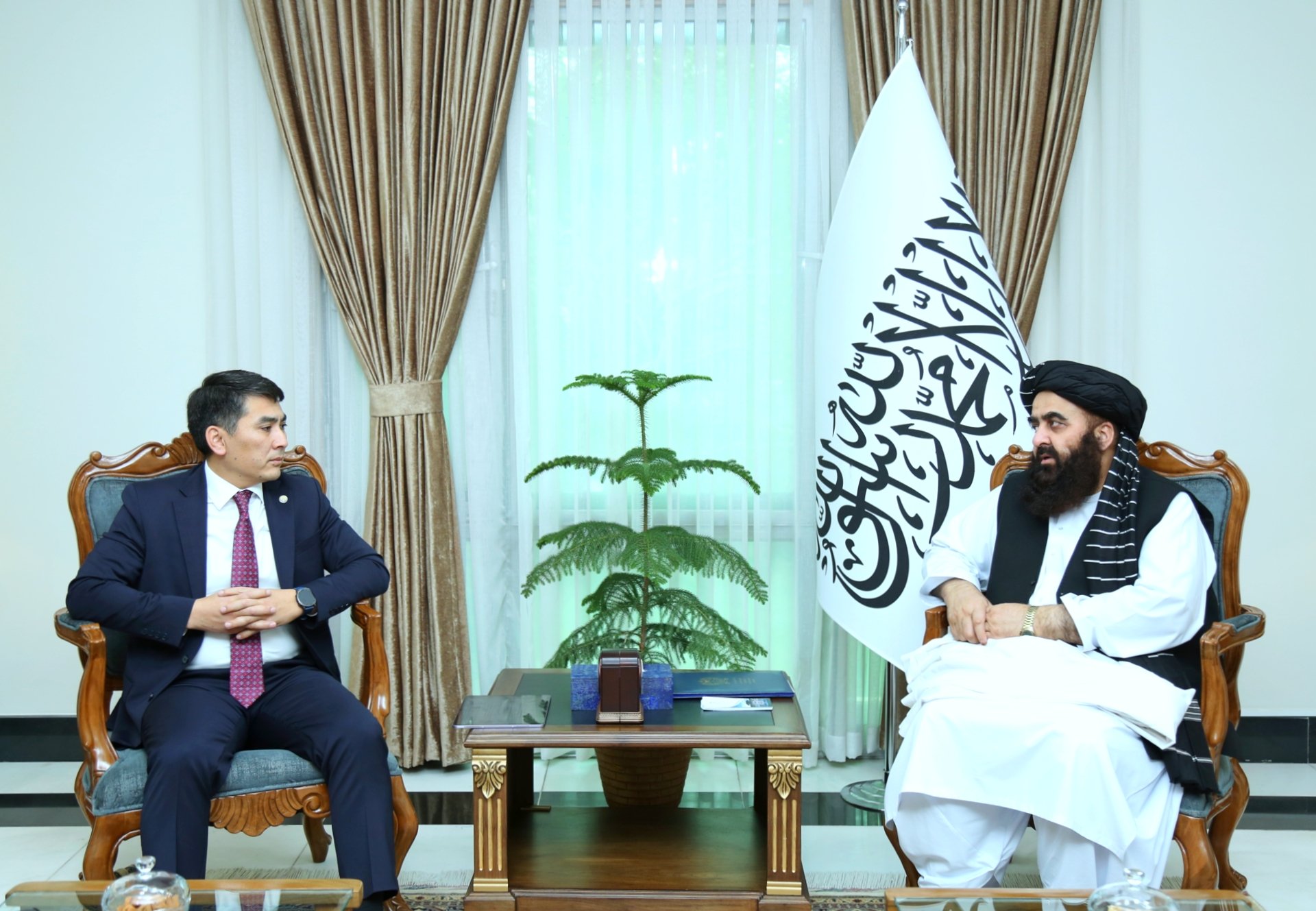 د قرغیزستان جمهوریت د بهرنیو چارو وزارت مرستیال، محترم غیرت تورسنګلوف د افغانستان اسلامی امارت د بهرنیو چارو وزیر محترم مولوي امیرخان متقي سره وکتل.