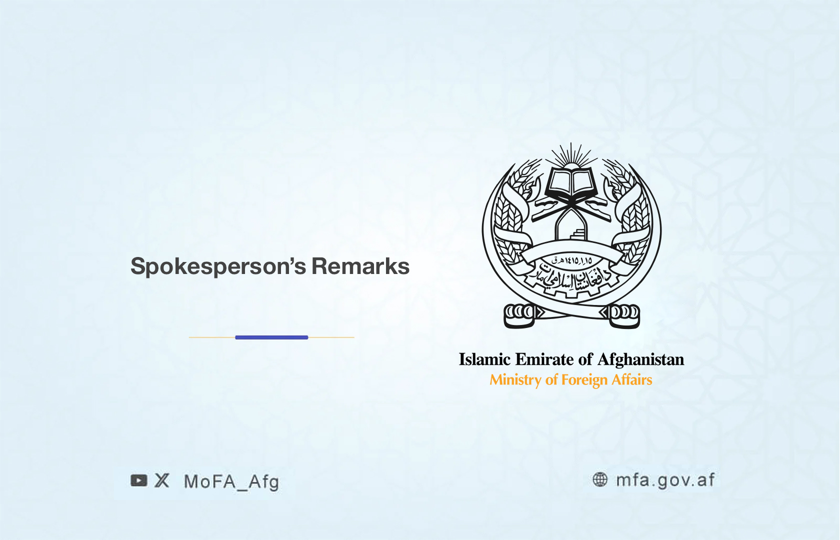 The Islamic Emirate of Afghanistan expresses its deep regret regarding the recent escalation following the attacks against Iran by Israel & the United States, & the subsequent expansion of the situation involving Gulf countries being targeted by Iran.In line with established international principles, the violation of national sovereignty, territorial integrity, & national airspace, as well as the killing of innocent civilians are condemnable actions.